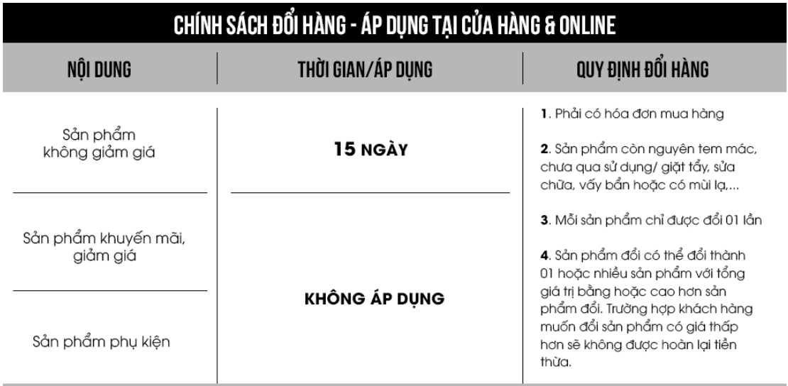 LƯU Ý: CÁCH THỨC ĐỔI HÀNG ĐỐI VỚI KHÁCH MUA HÀNG ONLINE