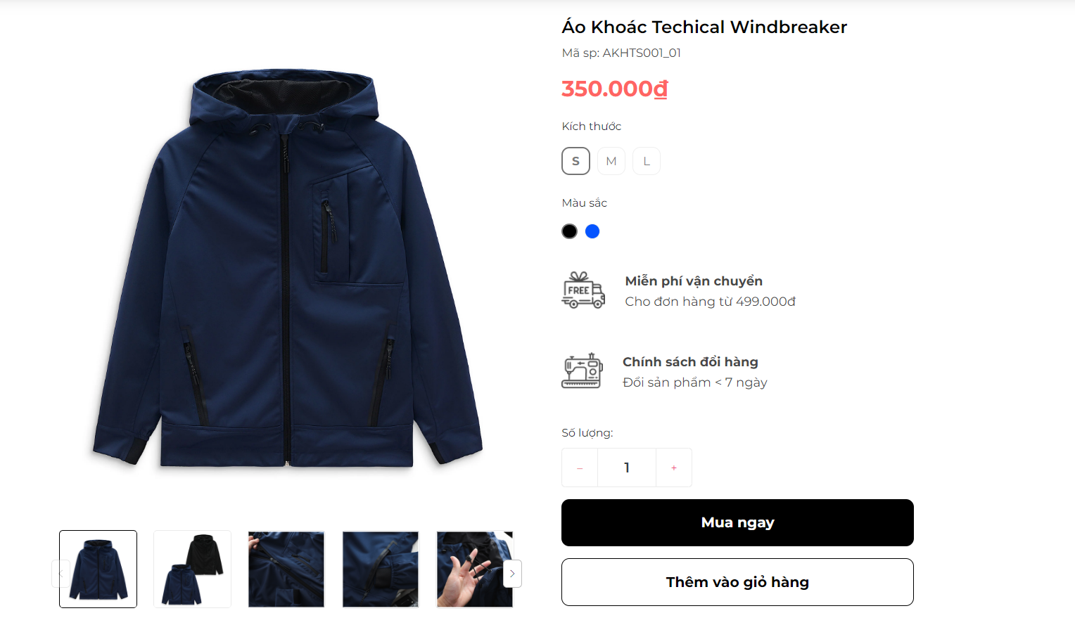 Bước đầu tiên: Tại sản phẩm cần mua, chọn size, chọn số lượng, sau đó: